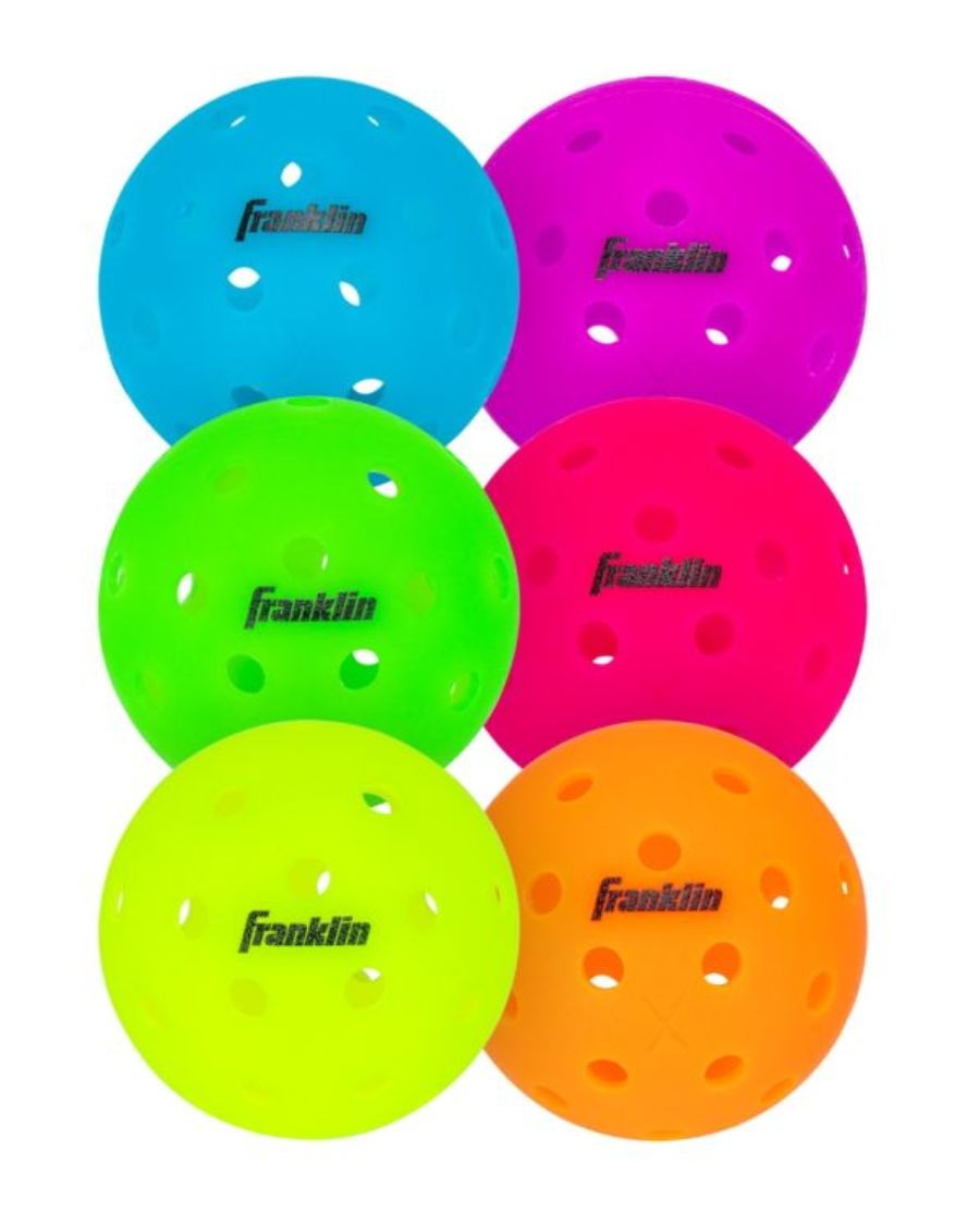 Franklin Sports' X-40 Pickleballs are made for premium play and performance and are the official pickleball balls of the US Open Pickleball Championships! Designed with precision-drilled holes and constructed from durable polyethylene, the X-40 outdoor pickleballs are built to outperform and outlast other pickleballs on the market. The machine-drilled holes on each pickleball ensure steady flight patterns and reliable spin on every ball for a consistent feel to your pickleball games. The ultra-durable polyethylene construction prevents denting and cracking even on outdoor courts, so you can keep playing all season long. These X-40 pickleballs have also been rigorously tested for reliable bounce and spin, so you can make the perfect shot.