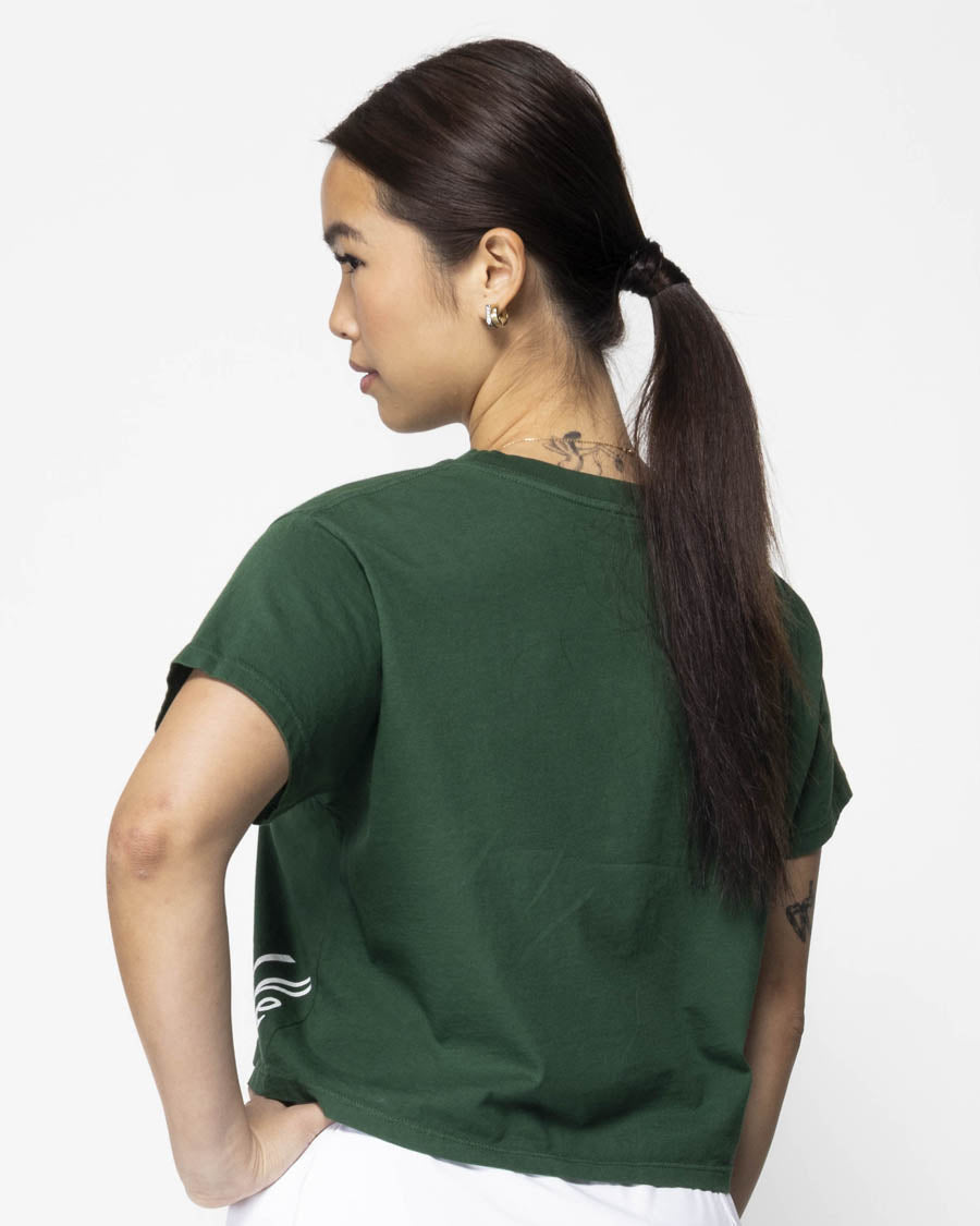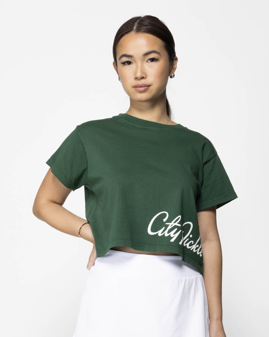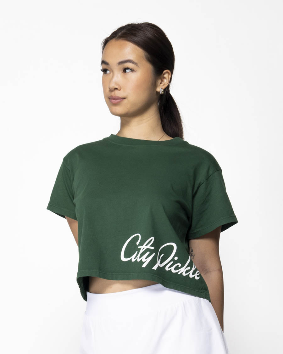 Embrace your inner athlete while exuding confidence and style with this must-have Women's logo Crop Top. Pair it with your favorite leggings, shorts, or joggers for a complete look. Recommended uses: hitting the pickleball court, visiting the yoga studio, running errands around town, and lounging at home.