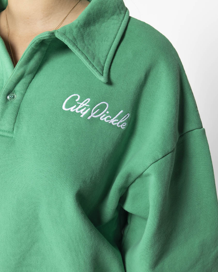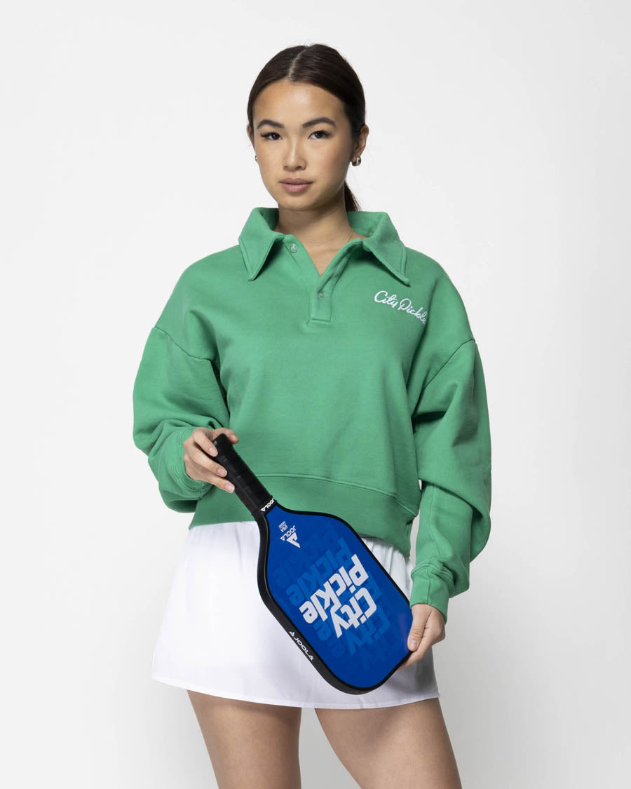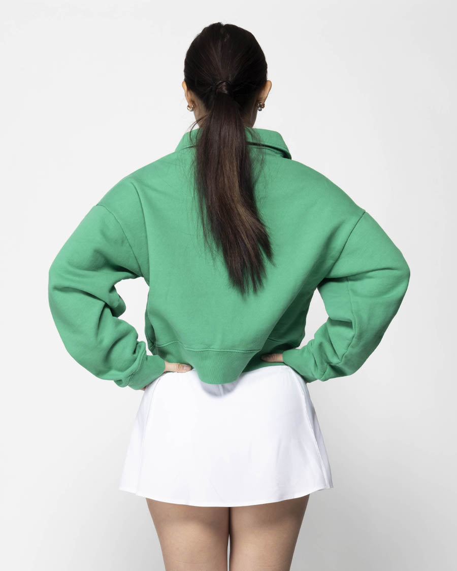 Perfect for a casual chic courtside look, this cropped fit polo collar sweatshirt mixes comfort and style perfectly. Made of soft cotton fleece, with dropped shoulders and rib knit hem, this polo is perfect for your warm-up and post-match recovery.