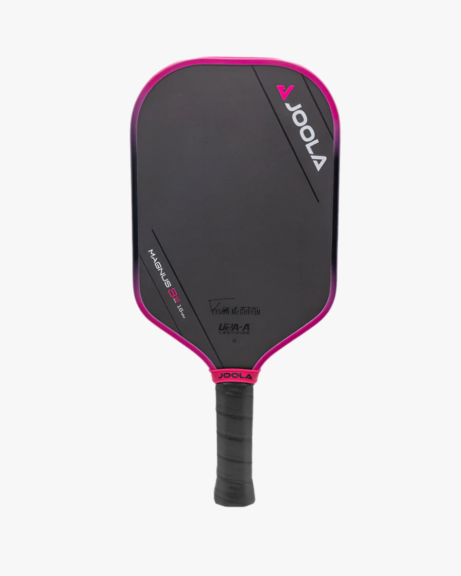 nspired by the competitive roar of Tyson McGuffin, the Magnus 3S 16mm pickleball paddle matches the electrifying style of its namesake. As the game of pickleball continues its rapid evolution, JOOLA’s innovative paddle designers have created a series of paddles engineered for unparalleled solidity, stability, and strength. The solid construction of 3S provides you the consistency you need to perform at your best. Inside 3S is a new and improved core, combined with JOOLA’s existing Propulsion Core Technology, to give Magnus 3 the perfect blend of power and control.